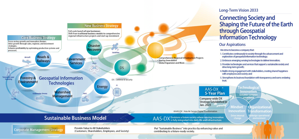 | 1954 | Founded Asia Air Survey Co., Ltd. in Minato-ku, Tokyo |