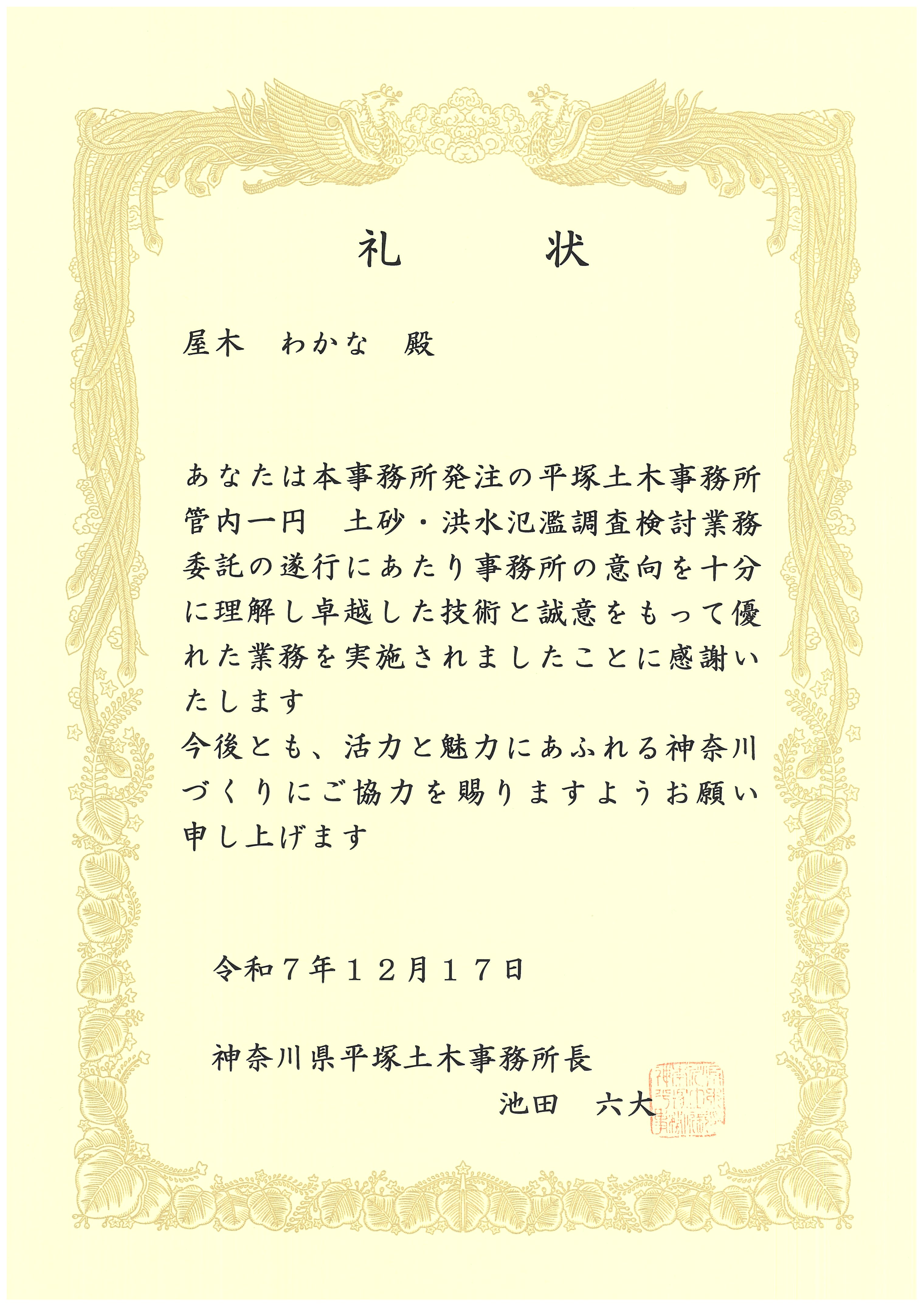 ■ 2025年度神奈川県平塚土木事務所所長顕彰
