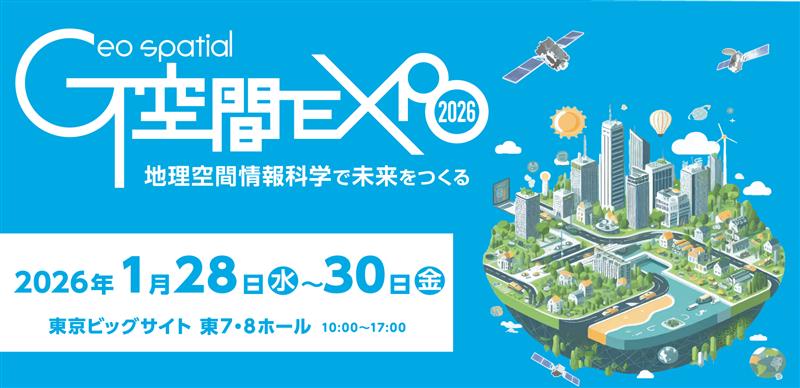 地理空間情報高度活用社会(G空間社会)の実現へ向け、産学官が連携し地理空間情報と衛星測位の利活用を推進する場である「G空間EXPO2026」が開催されます。本年も前回同様に、展示とオンライン両方での開催となります。当社では、オンラインと展示で下記のそれぞれの商品について出展を行っております。
