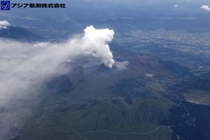 気象庁福岡管区気象台によると、2015年9月14日午前9時43分に中岳第一火口で噴火が発生し、灰色の噴煙が火口縁上2,000mまで上がり、火口周辺で大きな噴石が飛んだのが確認されました。この噴火に伴い火口周辺に火砕流が流下した可能性があります。
