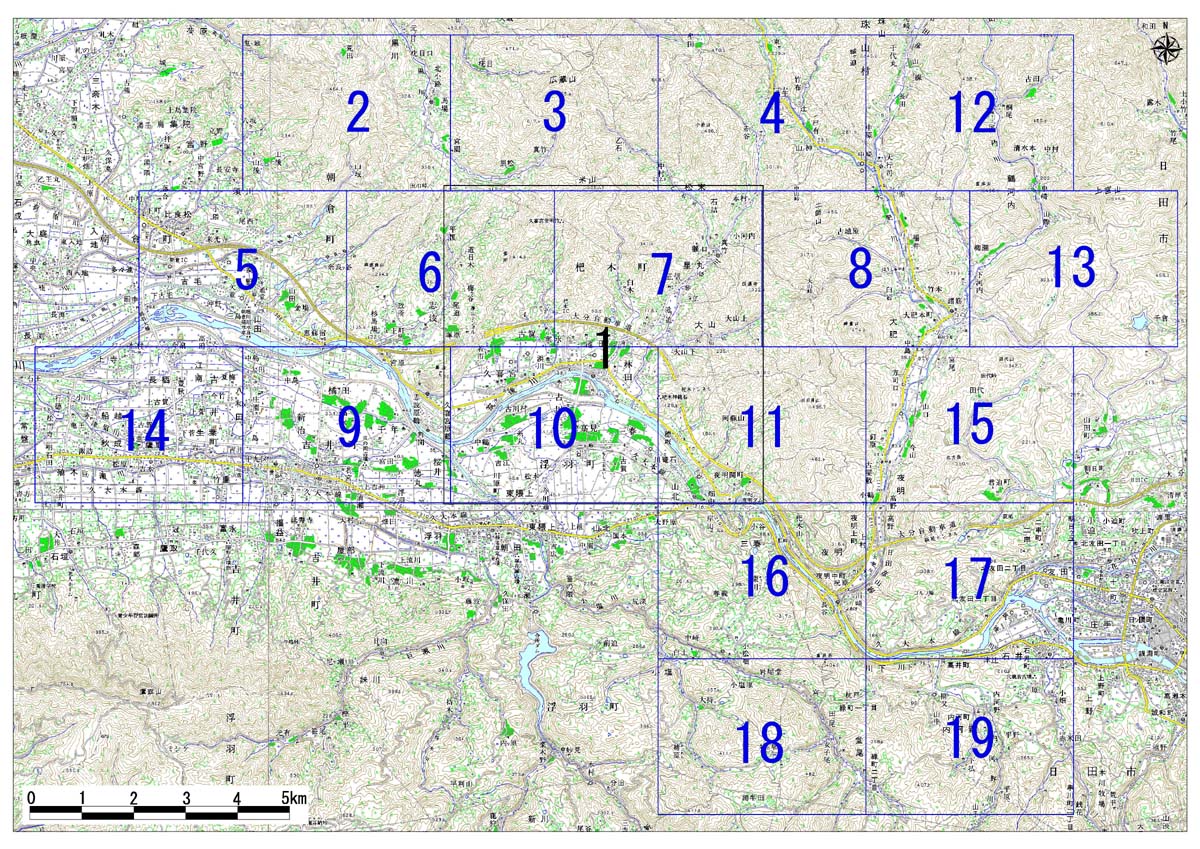 下記の図郭番号をクリックするとそのエリアの簡易オルソ画像(pdf)が表示されます。