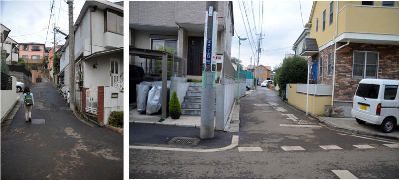 | 甲州街道との分岐から北東方向を撮影。左が入間川暗渠。右が水没した道路。暗渠の方が高い位置にあることがわかる。 なんで暗渠が、一番低いところにないんだろうとずっと考えていた。暗渠化された川は、排水用ではなくかんがい用の水路と考えれば、理解できる。水田は、水をためやすい低い土地に作る。そこを、そのまま住宅にしてしまうと、こういうことも起こりうる。 |
